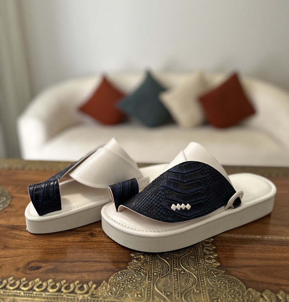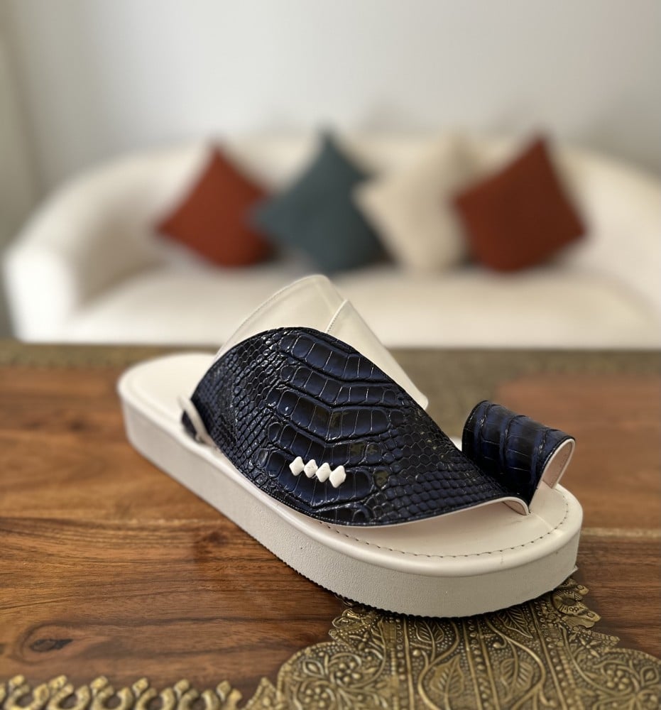 حذاء أبيض مع جلد تمساح كحلي مطبوع