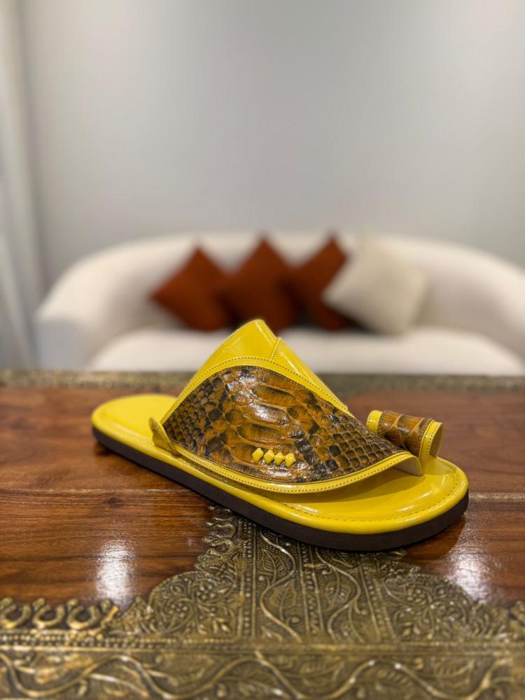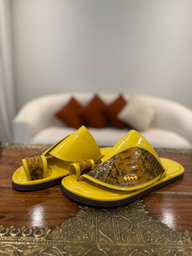 حذاء أصفر لامع مع جلد ثعبان طبيعي