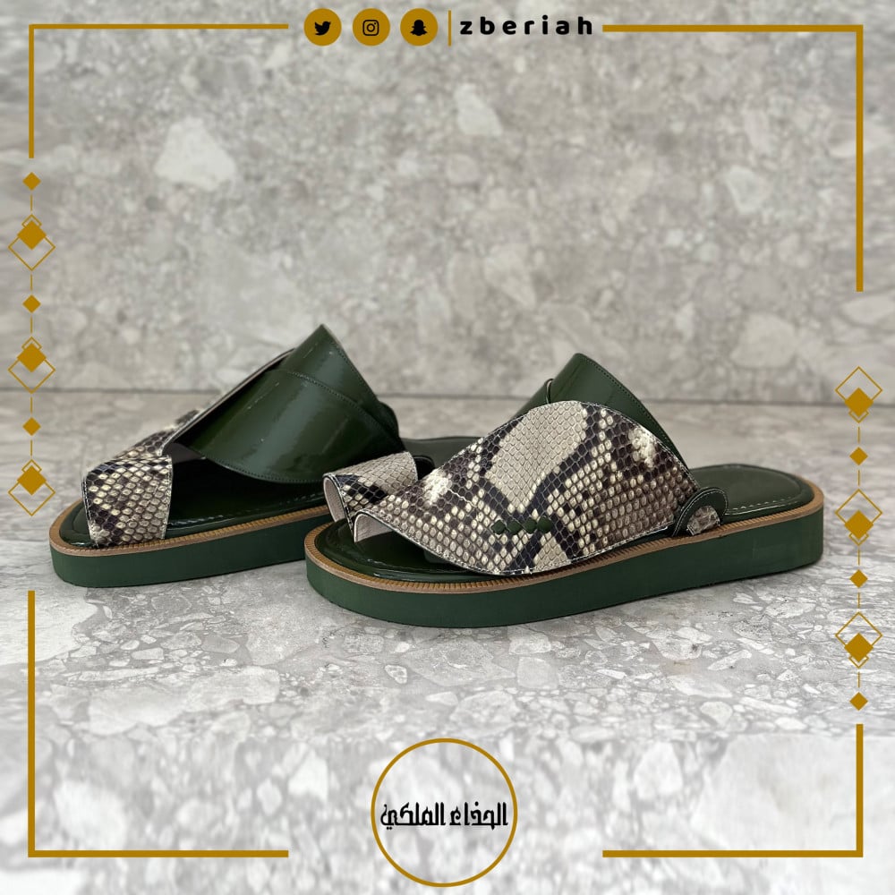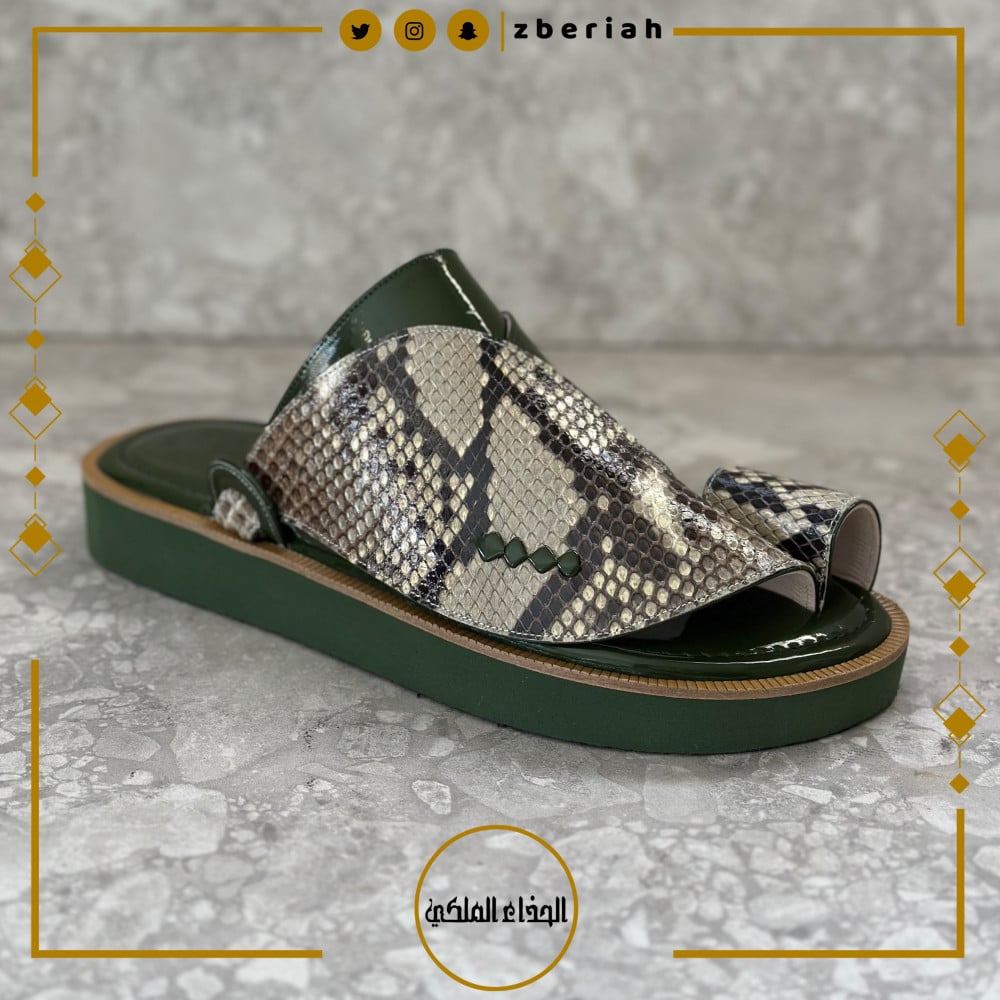 حذاء زيتي لامع مع جلد ثعبان طبيعي