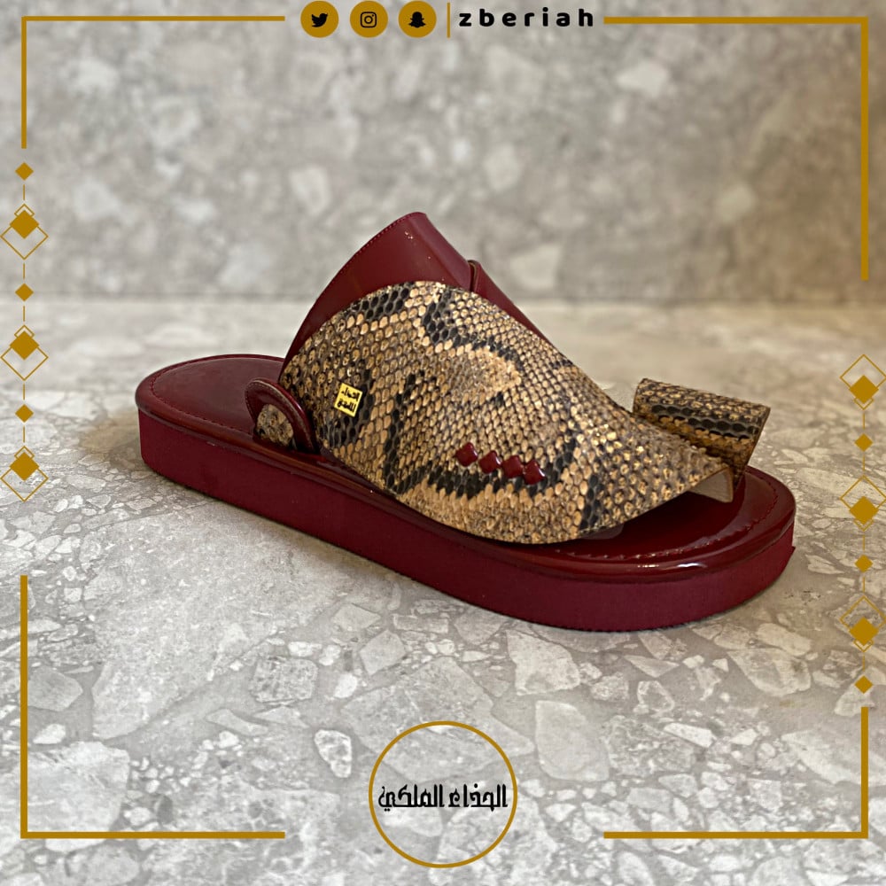 حذاء عنابي مع جلد ثعبان طبيعي